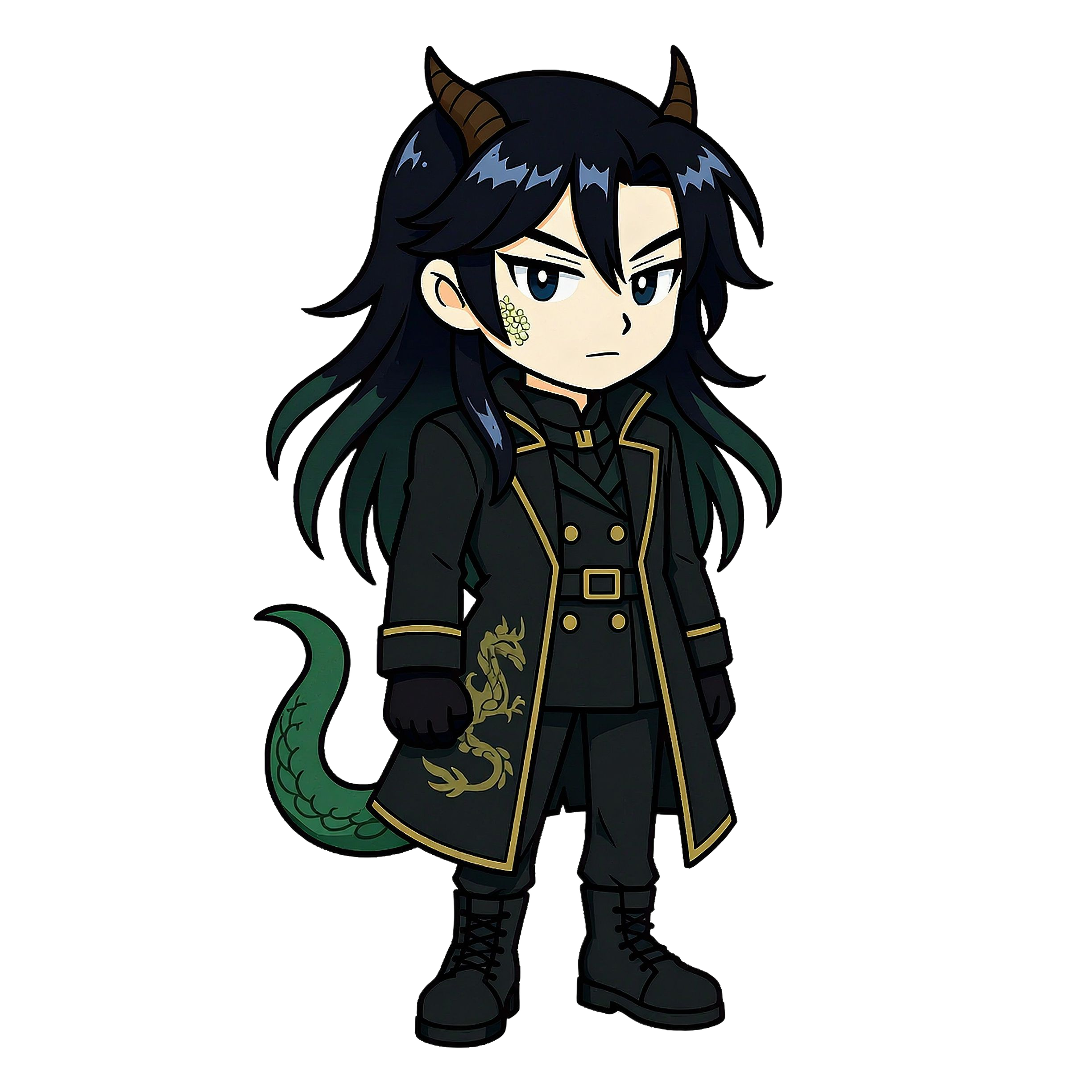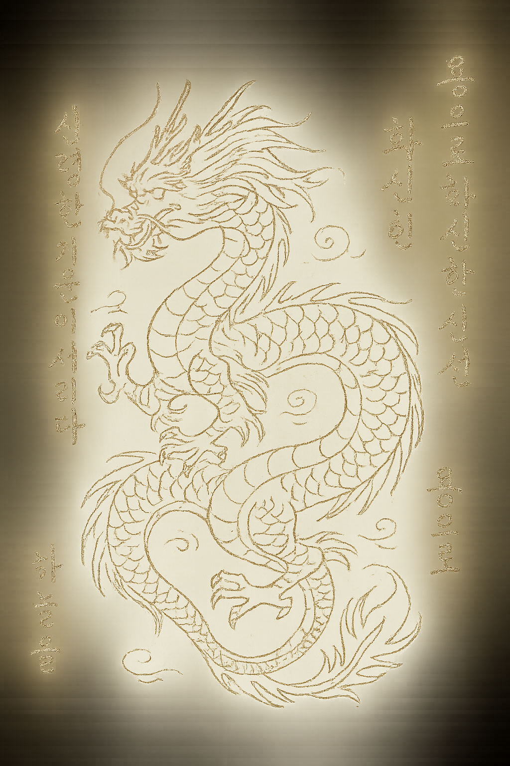 Yong (용) — a mountain-and-river dragon who favors a youthful human guise. Short swept horns and a faint scale beneath his left eye mark the truth. His route follows the Baekdu Daegan spine, where travelers still leave bowls of water at pass stones.